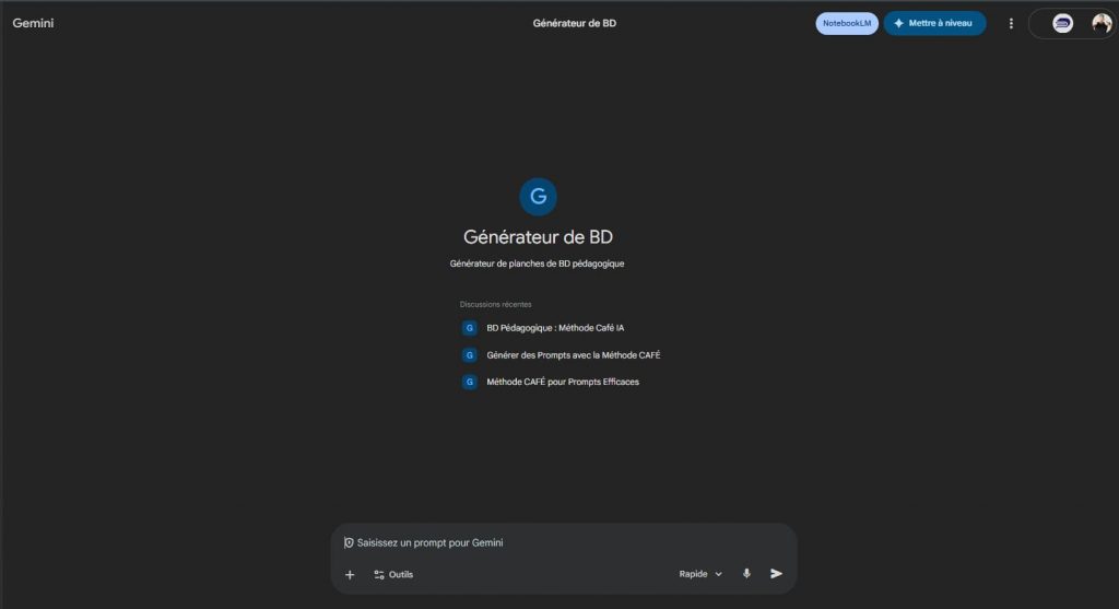 TL;DR : En combinant un Gem Gemini bien prompté et NotebookLM, vous pouvez générer des bandes dessinées pédagogiques complètes en trois étapes — sans dessin, sans InDesign, sans douleur. Idéal pour les formateurs, enseignants et tout professionnel qui veut expliquer des concepts complexes sans endormir son audience.