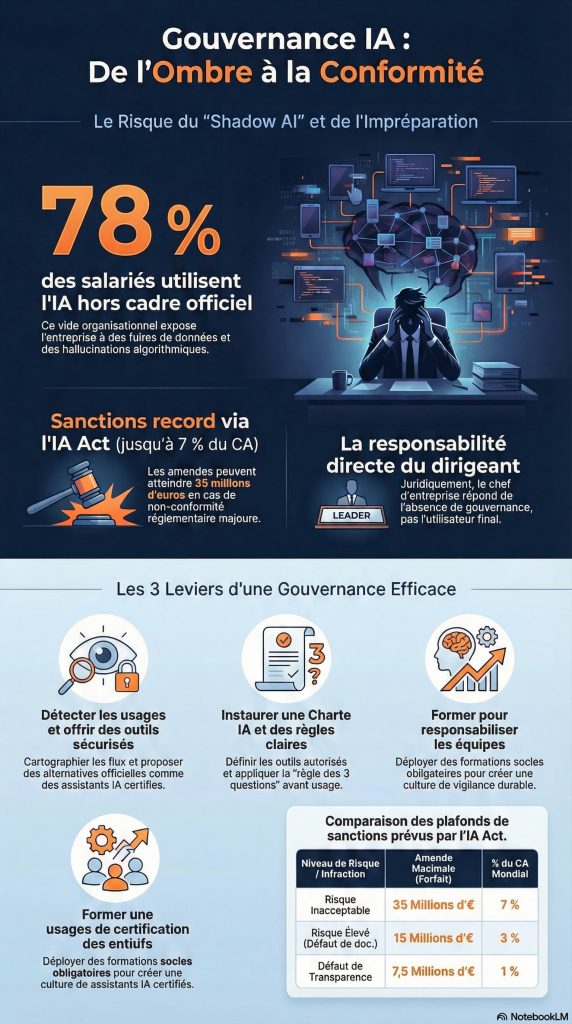 Shadow AI, IA Act, sanctions, formations — le guide complet pour les TPE et PME qui veulent reprendre le contrôle.