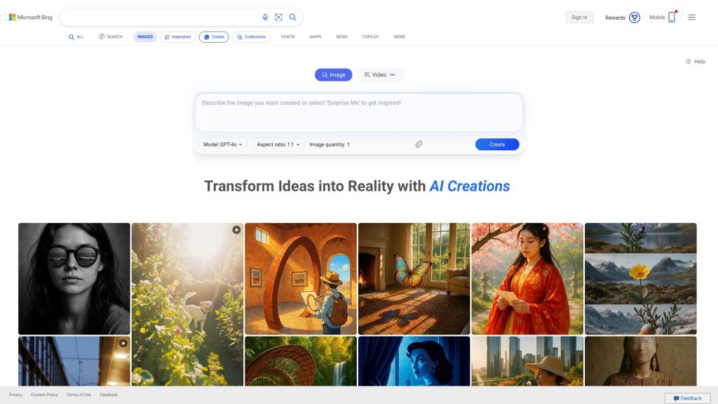 Intégré à Microsoft Designer (moteur DALL·E 3), génère des images directement dans le navigateur.