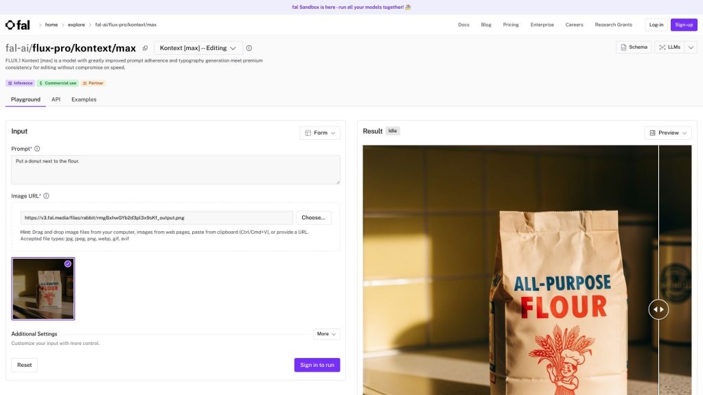 Lien : https://fal.ai/models/fal-ai/flux-pro/kontext/max
